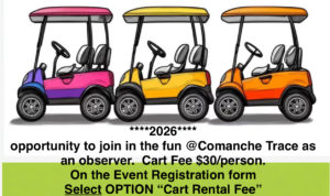 Friday March 27 | 9:30 Tee off | Comanche Trace Golf Course *Bill Abel *Debbie Orozco Childers | Click here: Golf Tournament *** Golf Player Fee $100. ***Golf Tourney Observers Cart Fee $30. sign up on the Event Registration Form https://pci.jotform.com/form/231348041743148 lunch/snack (your selections at your cost) break after front 9. |